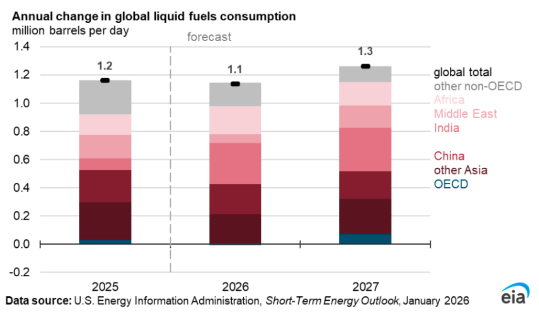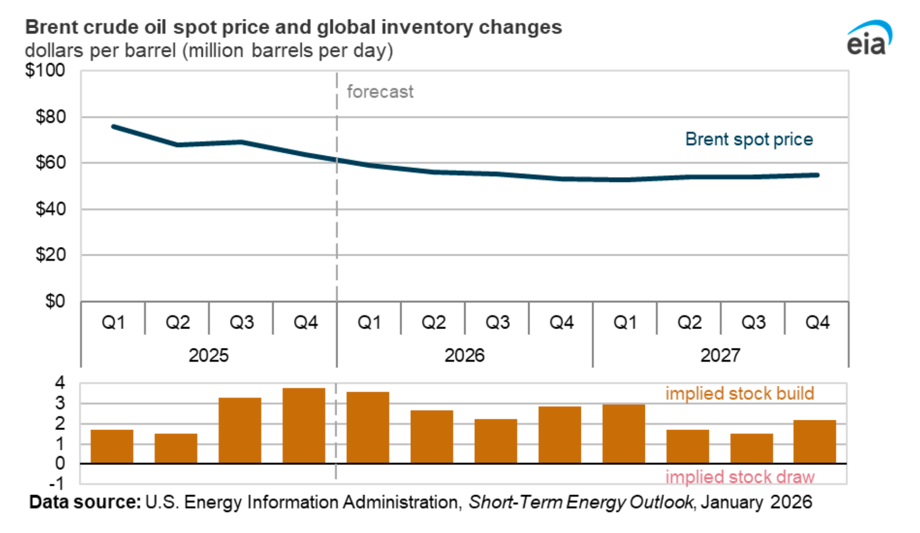 EIA Ocak 2026 STEO'sunu okurken bazı notlar aldım. Kısaca Brent 56 dolara iniyor, Çin'in stratejik alımları