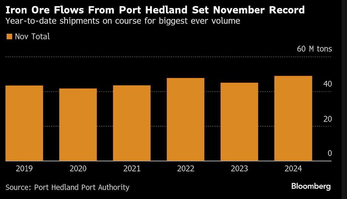 Demir cevheri arzının temel göstergesi sayılır, Hedland Limanı. Malum, Avustralya'da, devasa ölçekli. Öyle ki geçen ay 48.8 milyon ton demir cevheri yüklemiş. Rekor oldu. Sene başından beri de 521 milyon ton oldu.