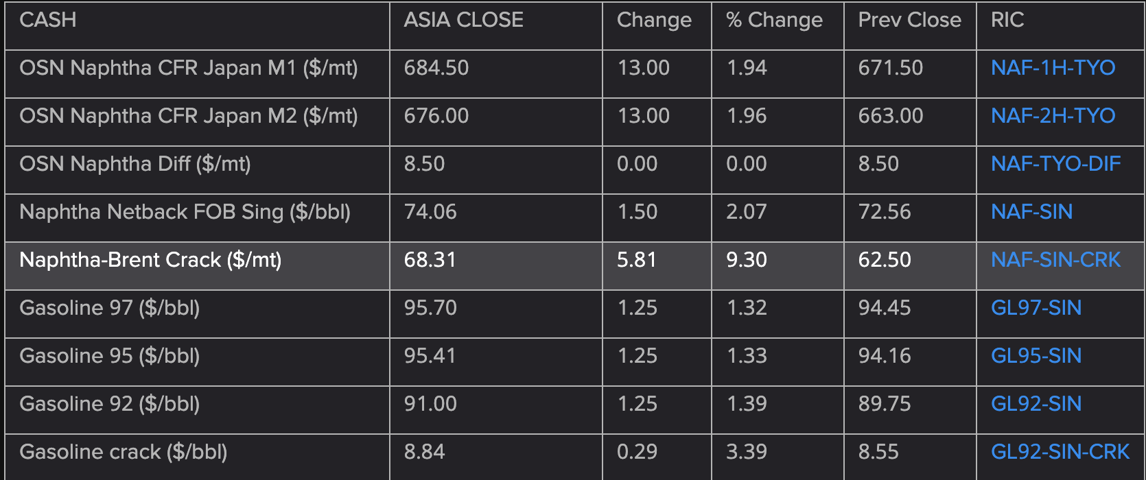 ➖ Asya’da benzin marjları bir nebze toparlandı. Refinitiv verilerine göre 8.84. Grafikte nafta marjı da görülebilir. Amerika’da sürüş mevsimi başladı. Japonya’da bakımlar var. An itibarıyla Brent ve WTI da yükselişte, %1’e yaklaştılar