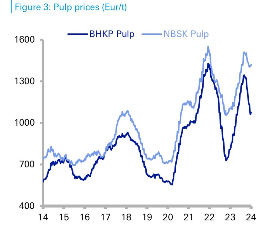 Iğne yapraklı selüloz tarafında düşüş yüzde