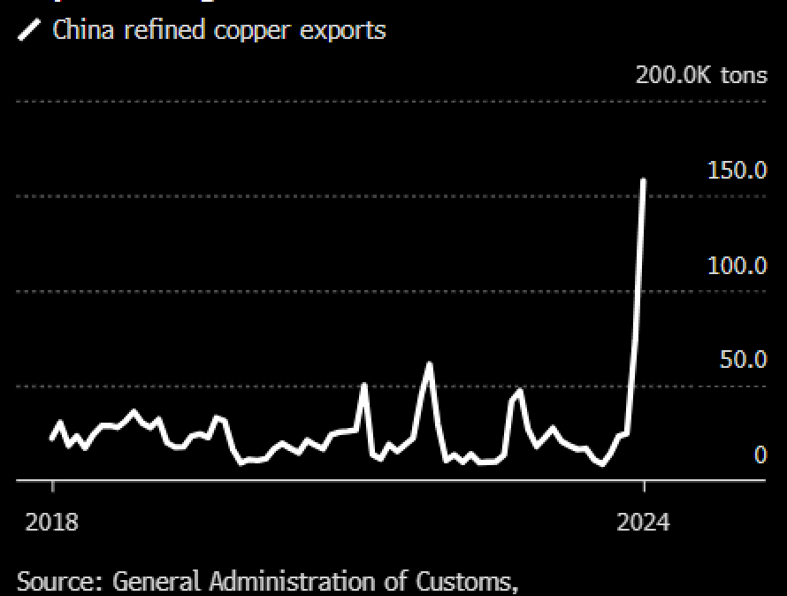 ♦️ Çin’in bakır ihracatı anormal seviyelere yükseldi ve haziranda rekor yineledi. Hatta grafikte görüleceği gibi ‘anormal’ tanımı yetersiz de kalabilir. Aylık miktar 157 bin tonu aştı. Bir önceki dönem rekoru 2012 yılında 102 bin tonla kırılmıştı. Tahmin edileceği gibi içeride ekonomi yavaşlıyor. Bakır rafineri toplanıp sözleşip çıktı kısalım diyor ama lafta kalıyor. Diğer taraftan arbitraj imkanı vardı ve LME sevkiyatı cazibe kazandı. Bunların yanı sıra genel olarak Çinliler bakır fiyatlarını dizginlemek de istedi ki, bu konuda Mayıs başında uzun bir yazı yazmıştım.