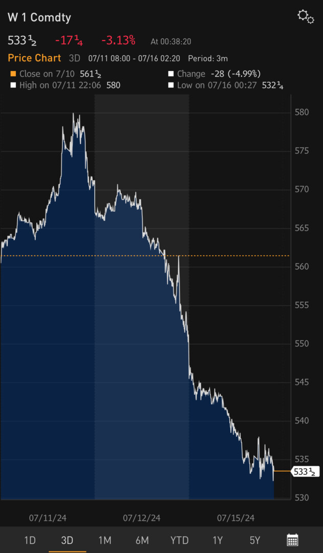 ♦️ Buğday konusu uzadı. O kadar anlattıktan sonra son üç günlük fiyat grafiğini de ekleyeyim. Zira öyle böyle düşmedi.