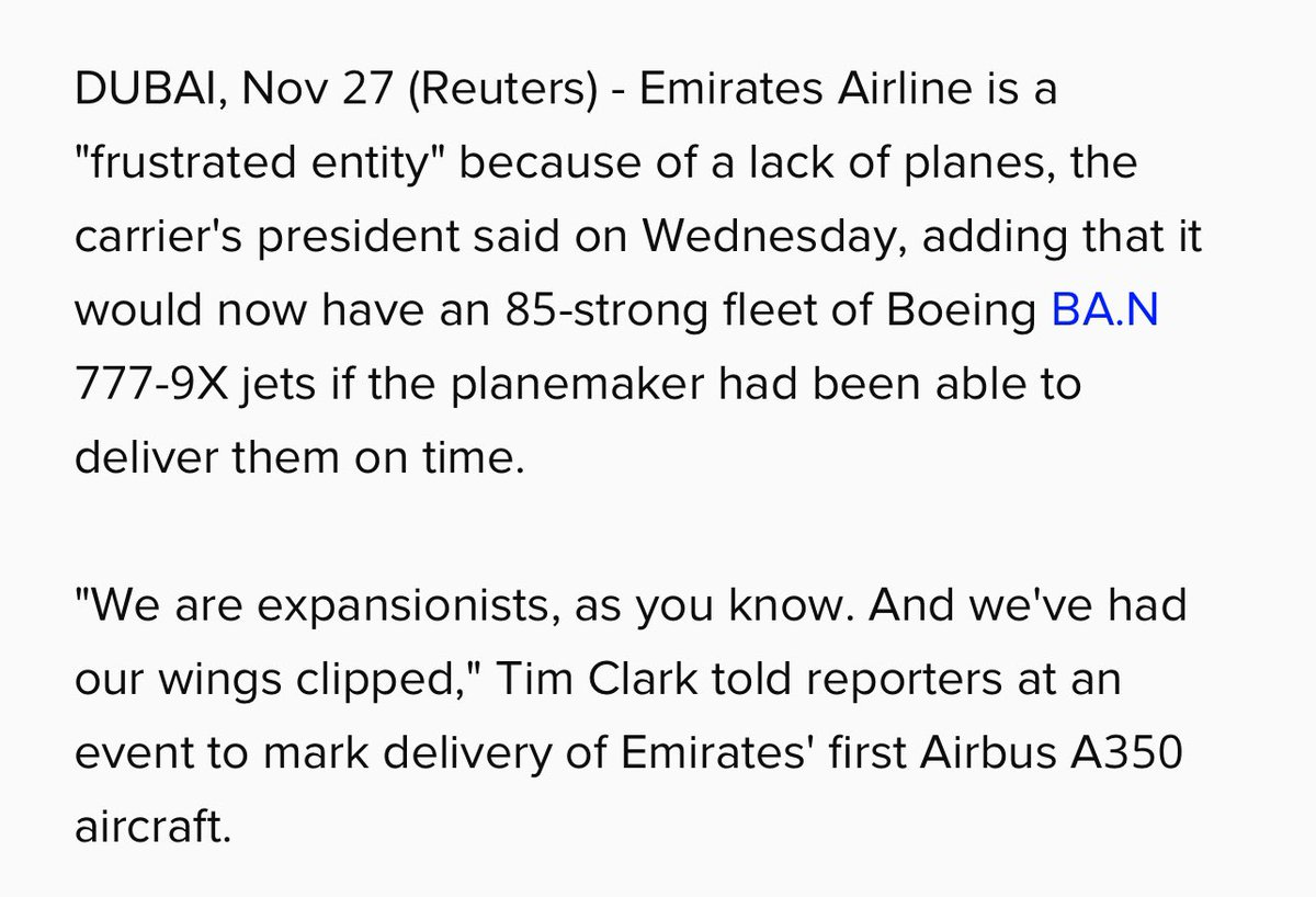 Emirates'in Boeing'den aldığı geniş gövdeli uçakların teslimatı büyük sorun.
