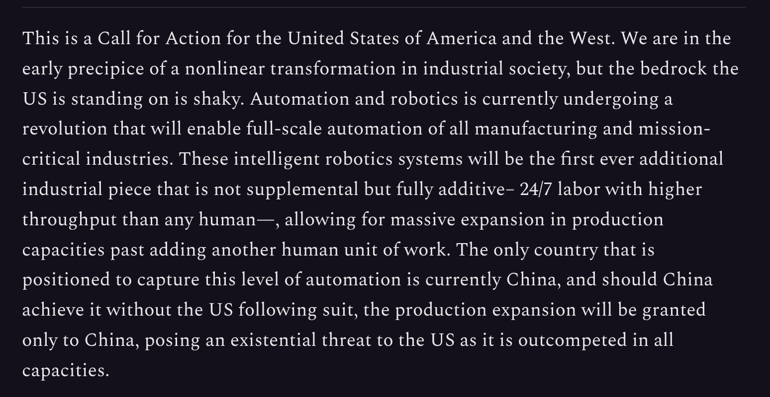 Burada şunu eklemem lazım, Çinliler çok daha etkin ve düşük maliyetli bir robot penetrasyonuna hazırlanıyor. Semianalysis bu konuda uyarmıştı, Çinliler fabrikalara kitlesel biçimde robotları sokarsa gameover olur demişti. Linkini de bulayım. Hatta ekran resmini de ekleyeyim.