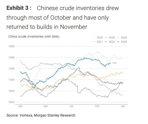 Çin’in ham petrol stoklarında da bir düşüş var. Ekim’de üst üste ikinci kez geriledi ve 21,6 milyon varile indi. Bu arada stokların kasım ayında tekrar artmaya başladığına da dikkat çekmek gerekir.