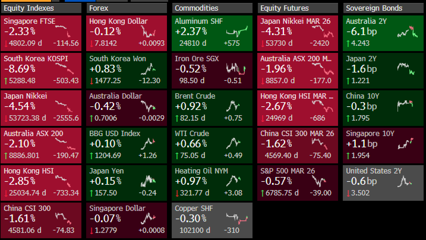 Kospi zaten bir felaket, dünkü ağır satışların üstüne bu sabah bir ara %11'den fazla kayıp var.