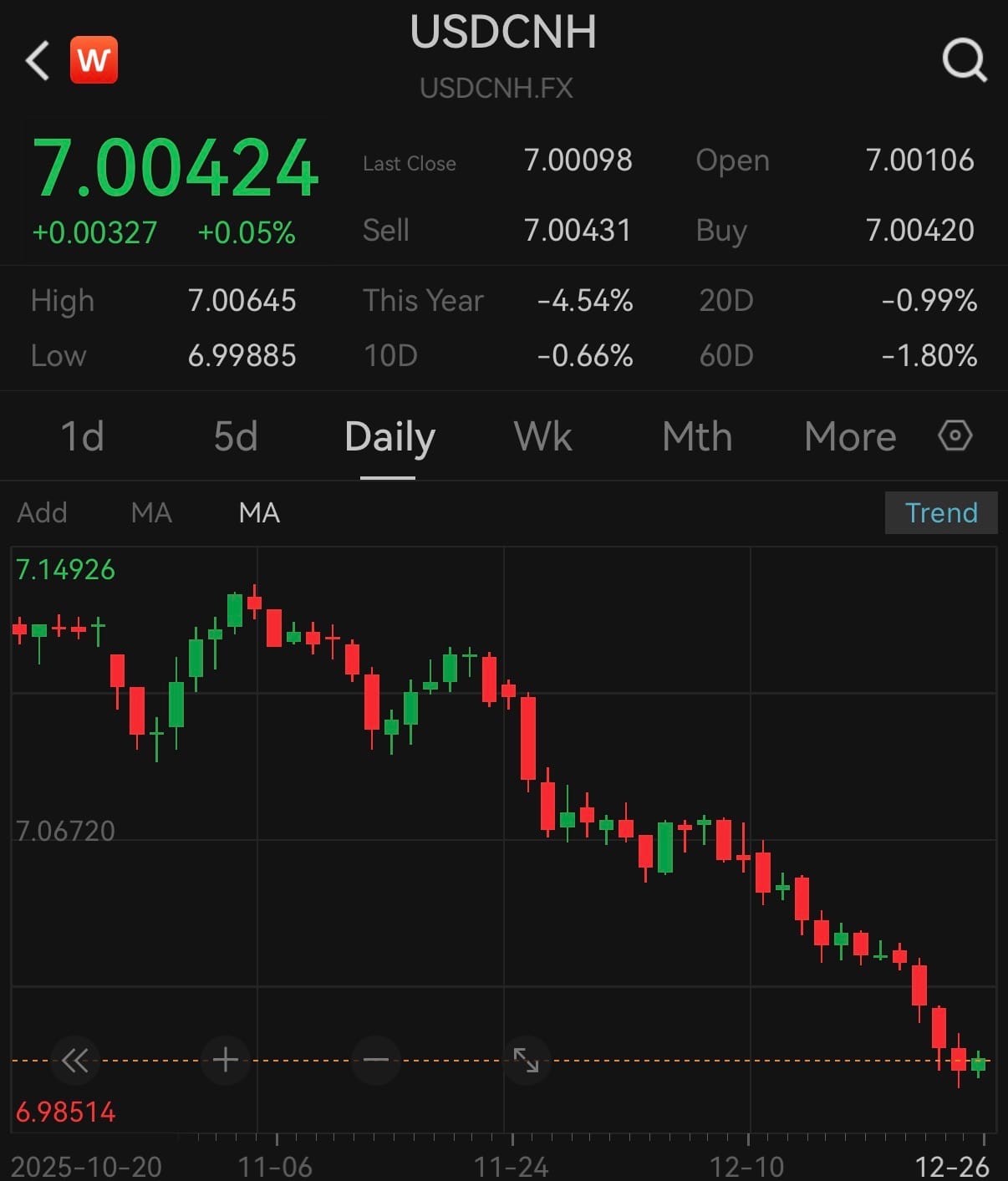 Bu arada fark etmeyenler olabilir. Ofshore kur dün 7'nin altını görmüştü.