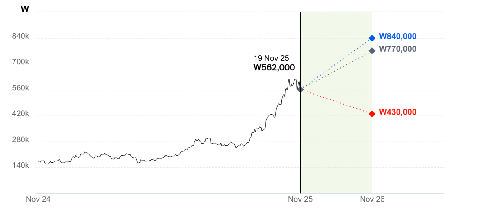 SK Hynix üç farklı senaryodaki (Boğa, Temel, Ayı) hedef fiyat analizini yapmış: