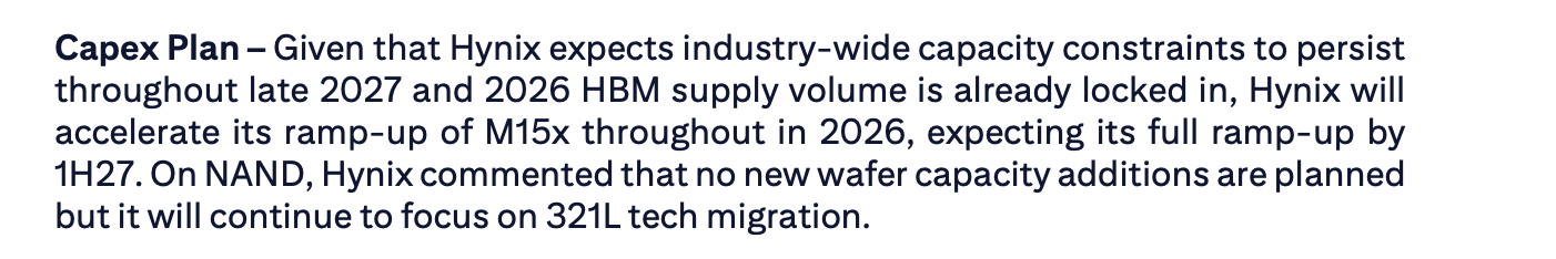 Ayrıca 2026 kapasitelerini çoktan sattıkları için, 2027 kapasite darboğazı çekmemek adına M15x fabrikasını 2027'nin ilk yarısında tam kapasiteyle çalışmasını planlıyorlar. Ayrıca NAND tarafında yeni wafer yatırımı yapmayacaklar, onun yerine dikey mimari ile verimi arttırmayı planlıyorlar.